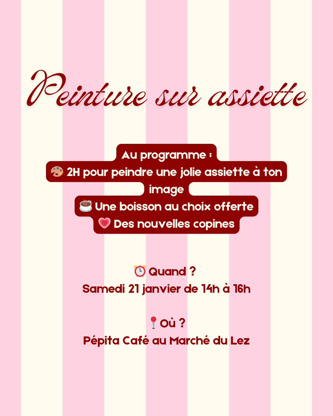 Rejoins-nous pour un atelier peinture sur assiette où tu pourras laisser parler ta créativité, papoter et créer une pièce unique à ton image 🤍