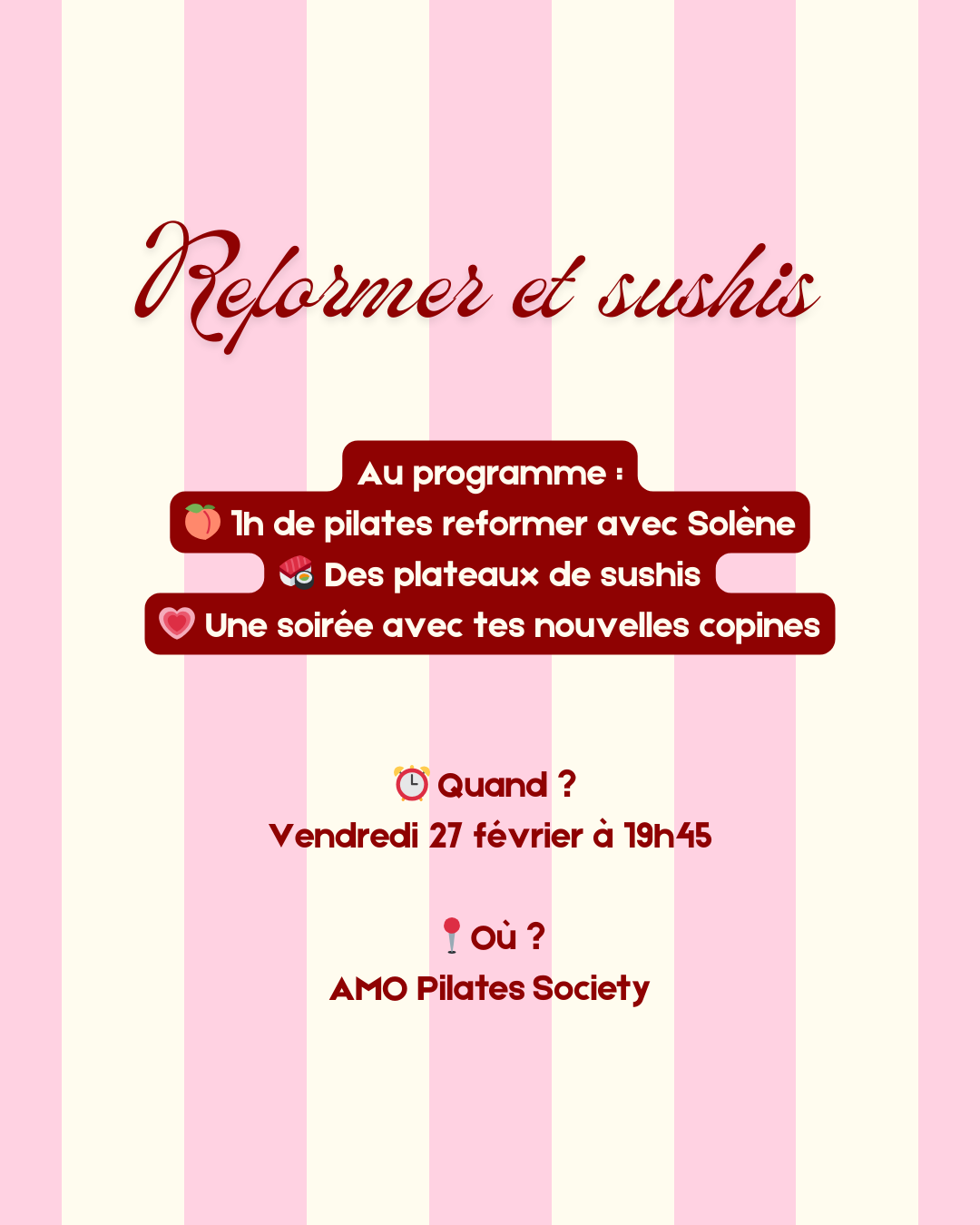 La soirée parfaite pour bouger, rire et savourer se passe chez Amo Pilates Society 🍒